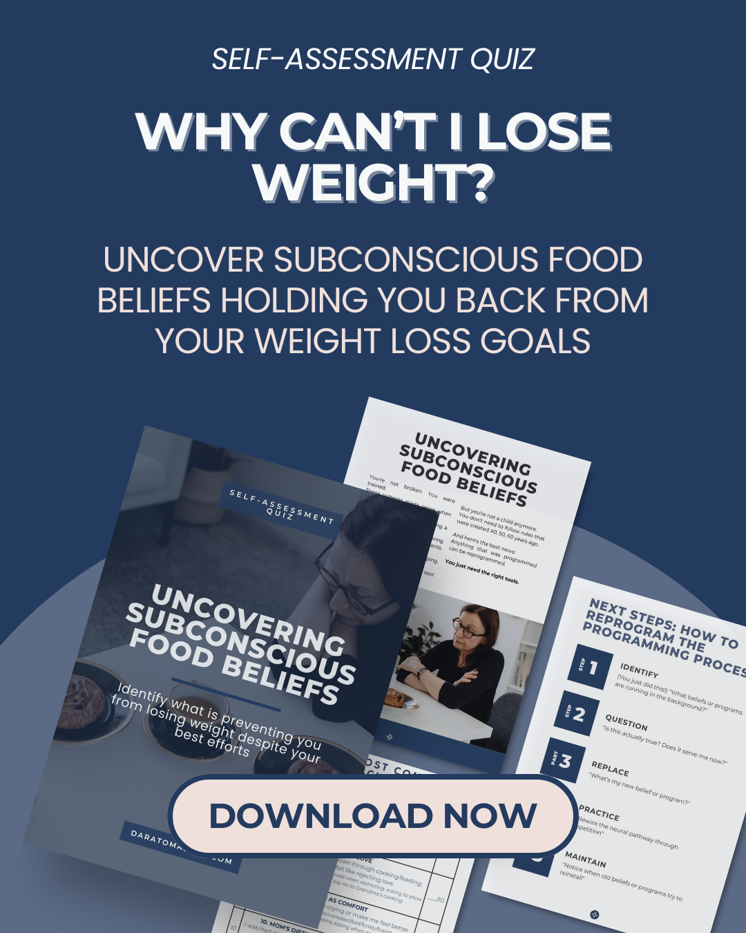 The solution to your continuous struggle is actually part of the subconscious beliefs you have around food. Use this self-assessment tool to uncover what has been holding you back from your weight loss goals all these years.